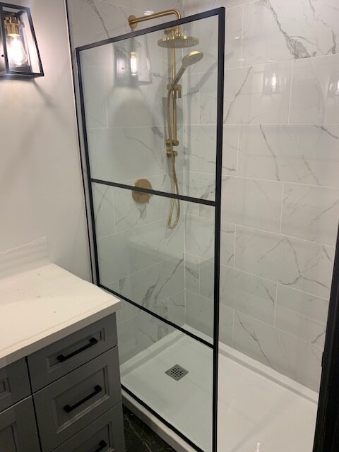 New glass shower wall