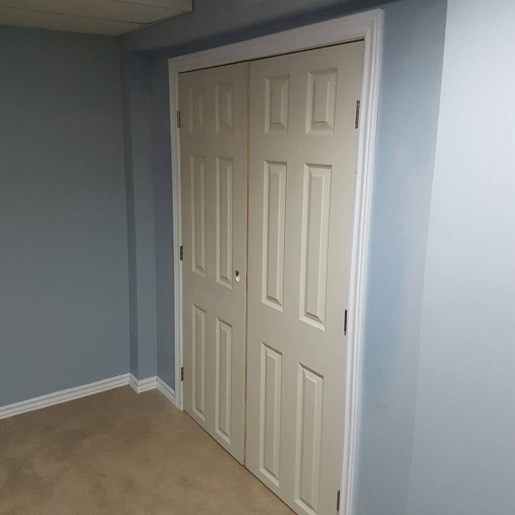 Double Closet Door installation in basement with low ceiling